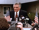 | "First Man-to-Fly" Interview on the set of Fugitive Mind Excerpt from Ultra Filmfax #68 by Brad Linaweaver BL: How did you become the Senator? DH: "My agent mentioned the project and gave me the script to read. I said this is quite good. We set up a meeting with Fred Olen Ray [and] had a long chat. I enjoyed finding out that he was a fan of my work. He really knows a lot about old movies and television series. He asked me, what part do you think you are right for? So I said, "All of them." [laughed] We both agreed the Senator was an obvious choice." "I had a beard then. Fed was going to let me keep the beard, and I appreciated that. But then I thought better of it. I couldn't see a Senator of today with a beard, so I shaved it off." BL: How would you describe the film? DH: "The cloning aspect is not so much science fiction anymore, but I'd describe it as a thriller. The brainwashing element is especially interesting." BL: What do you think of the attempt to ban human cloning research? DH: "I don't see why... I don't think there is anything wrong with this line of research. What are they afraid of? Do they think scientists are going to clone someone like Manson? That's nonsense. Medical science shouldn't be stopped. Let's see what happens."